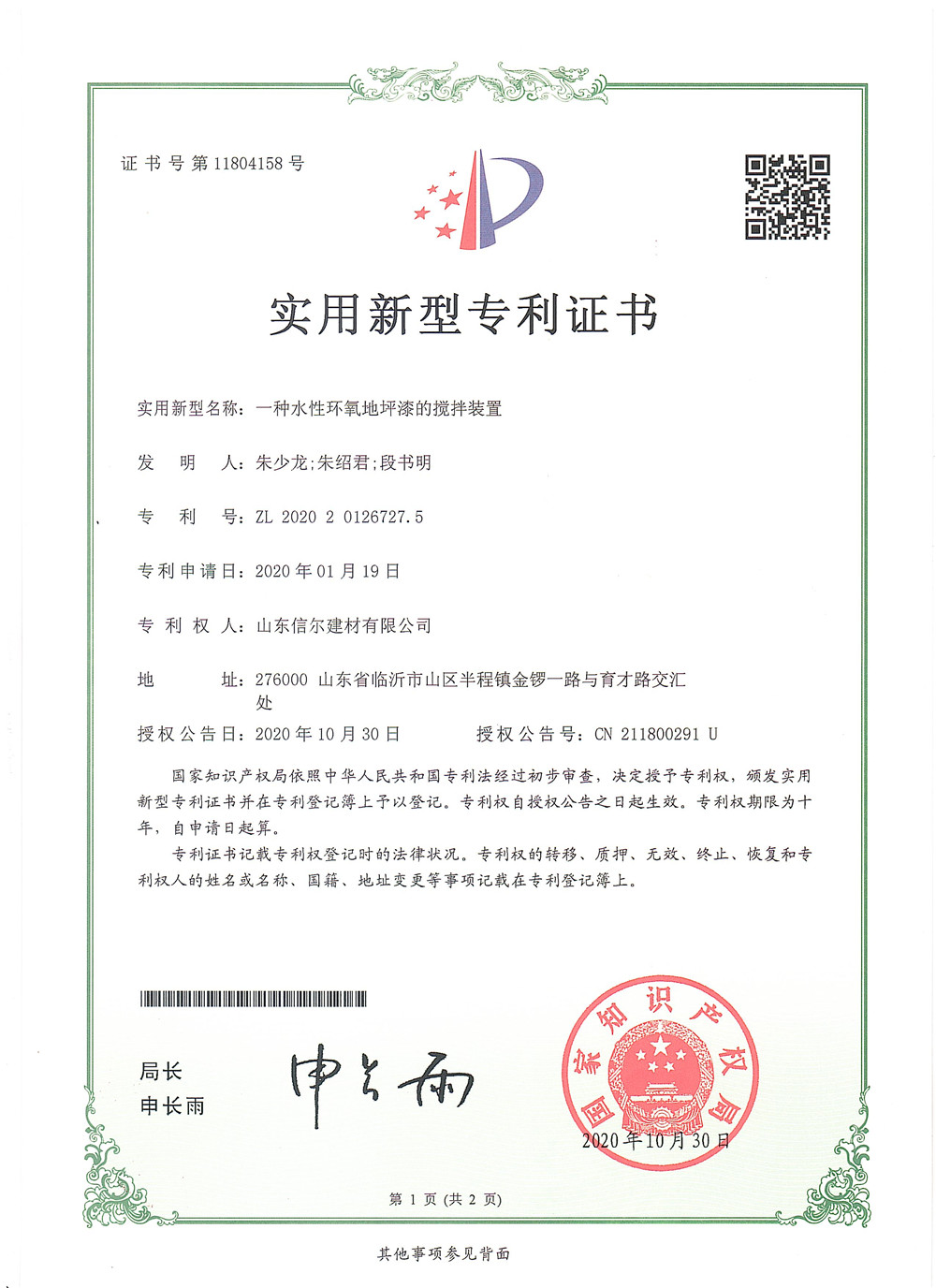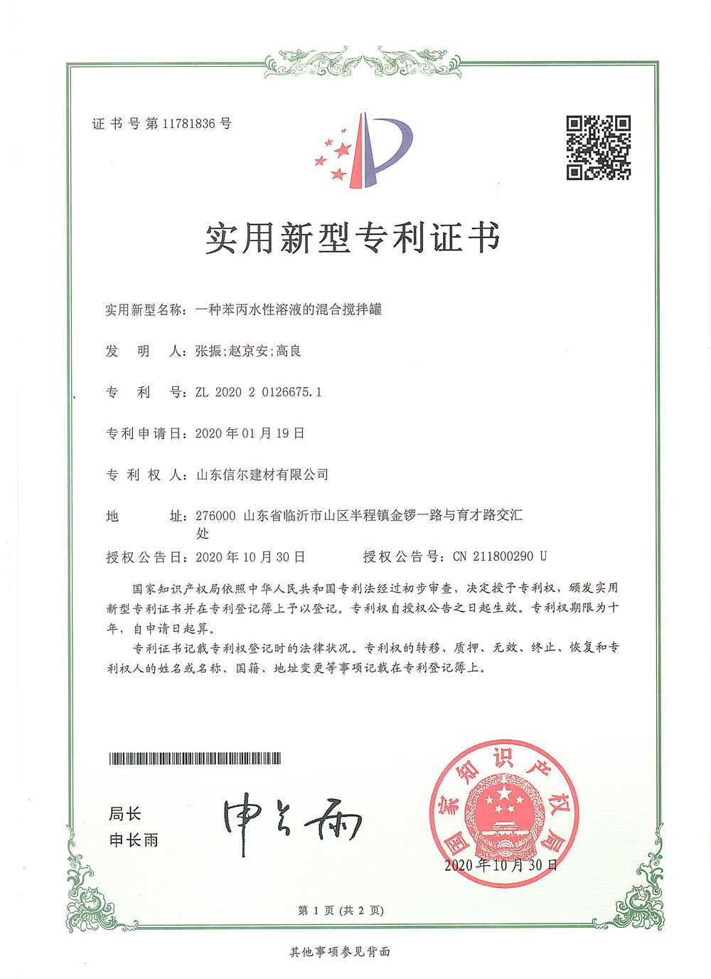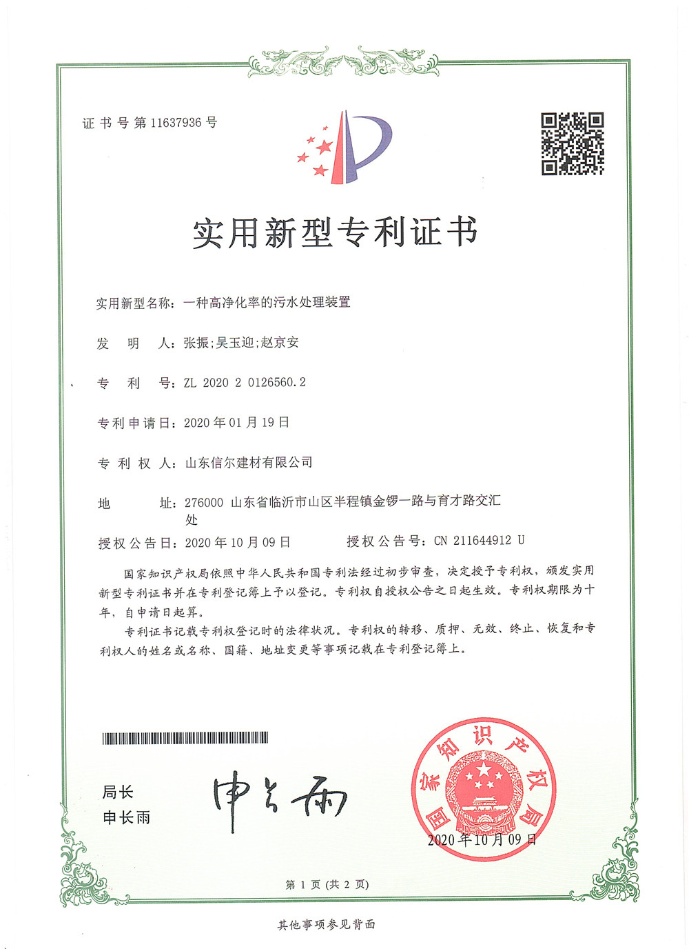 Utility Model Patent Certificate